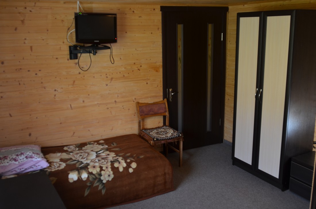 Котедж (приватний сектор). Загальна кількість кімнат – 7, розраховані на 14 осіб (можливі додаткові місця). На території знаходяться: мангал, під’їзд – шутрована дорога. Опалення – автономне водяне. Повністю дерев’яний.